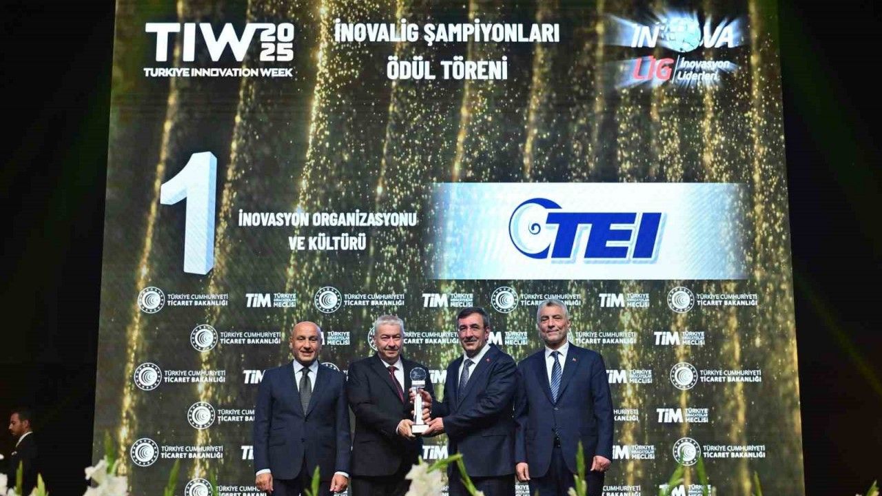 Ticaret Bakanlığının desteği ve Türkiye İhracatçılar Meclisinin (TİM) ev sahipliğinde bu yıl 12’ncisi düzenlenen Türkiye Innovation Week’in son gününde gerçekleştirilen İnovaLİG Şampiyonları Ödül Töreni kapsamında TEI’nin birincilik ödülünü, İş Geliştirme ve Satış Genel Müdür Yardımcısı Ahmet Kain, Türkiye Cumhuriyeti Cumhurbaşkanı Yardımcısı Cevdet Yılmaz ve Ticaret Bakanı Prof. Dr. Ömer Bolat’tan aldı. İnovasyon Organizasyonu ve Kültürü kategorisinde şirketlerin mevcut organizasyon ağlarının inovasyon yönetimine sağladığı katkılar ve bu kapsamda oluşturulan inovasyon kültürününün şirket içerisindeki içselleştirilmeleri değerlendirildiği belirtildi. Bu kategoride TEI’nin aldığı ödülün inovasyonu bir kurum kültürü haline getiren vizyonunun göstergesi olduğu vurgulandı.