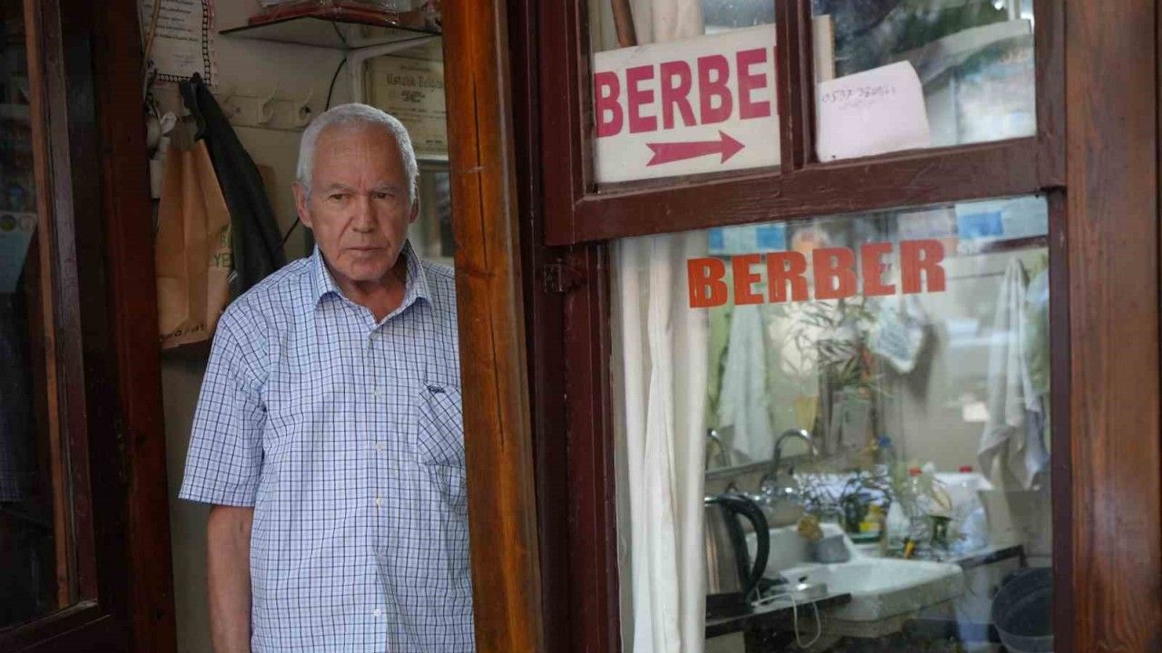 Antalya’da tarihi Zincirli Han’ın içinde yalnızca 5 metrekarelik ahşap kulübede tek koltukla hizmet veren 75 yaşındaki berber, 45 yıldır aynı dükkanda makas sallıyor.