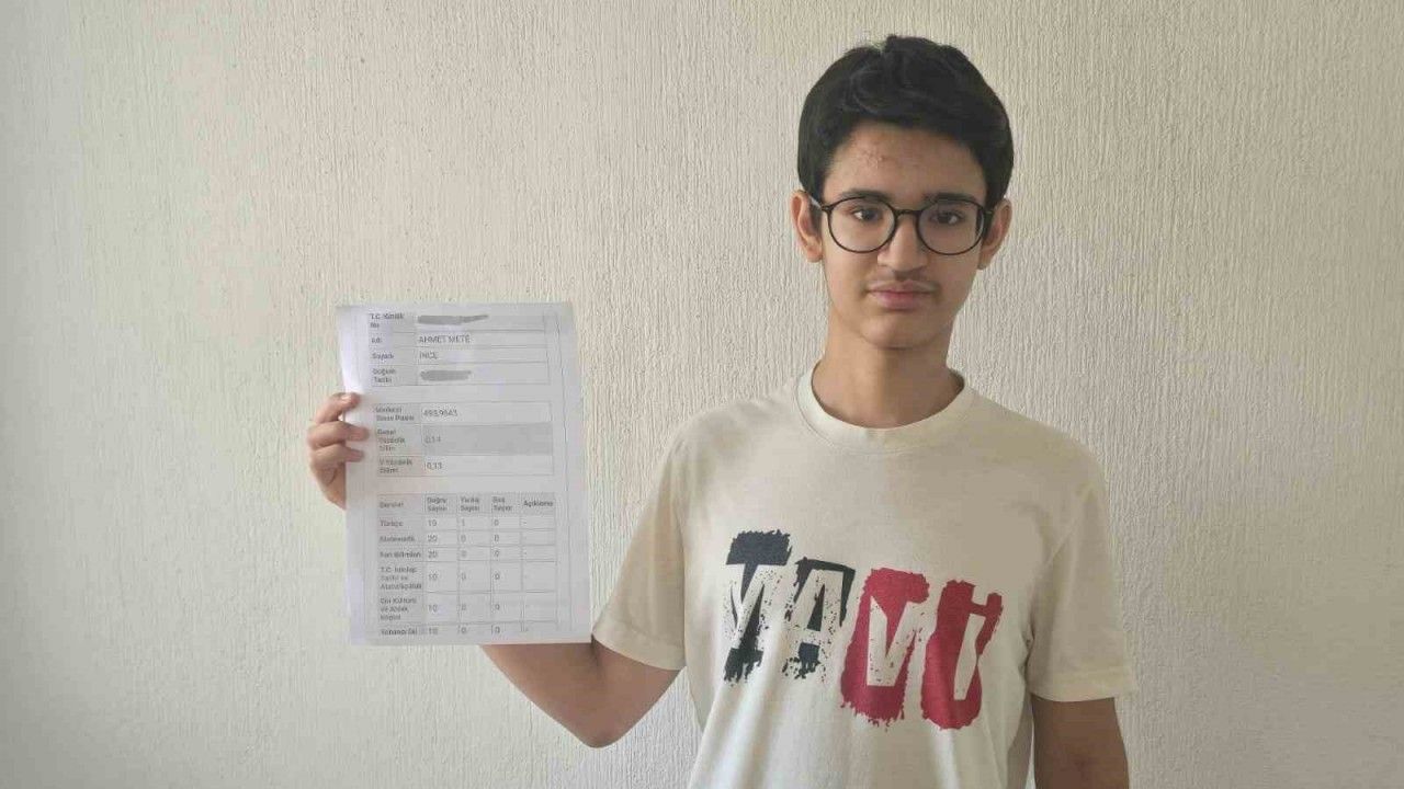 Ahmet Mete İnce, 493.9643 puan alarak Sarıgöl ilçe birincisi olurken, bu puanla ilçede bugüne kadar ulaşılan en yüksek başarıya imza attı. Tek yanlışa rağmen üst düzey bir sıralama elde eden başarılı öğrenci, hedefi olan Fen Lisesi’ne yerleşmeyi planlıyor.