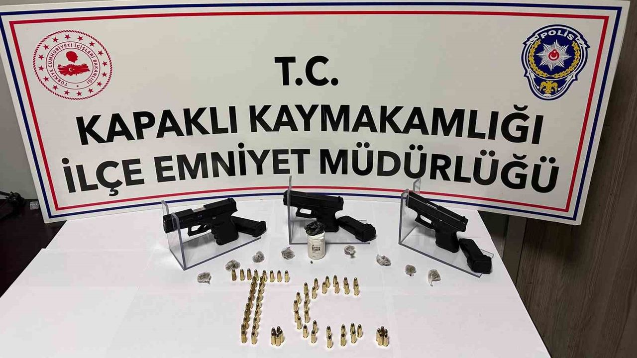 Tekirdağ İl Emniyet Müdürlüğü tarafından il genelinde huzur ve güvenliğin sağlanmasına yönelik yürütülen çalışmalarda, son bir hafta içinde yapılan denetim ve operasyonlarda 11 adet ruhsatsız tabanca, 5 adet kurusıkı tabanca, 70 adet mermi ve 3 adet tüfek ele geçirildi.