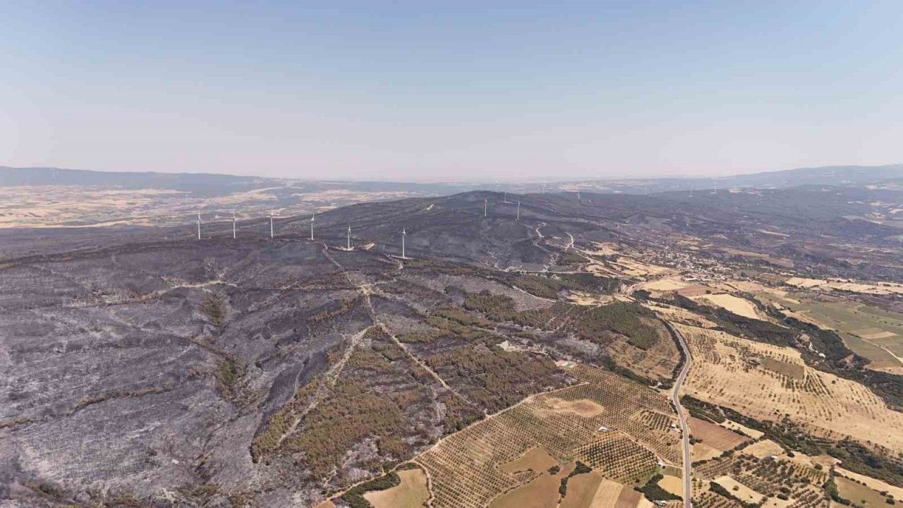 Tekirdağ’ın Şarköy ilçesindeki orman yangını kontrol altına alınırken, yanan alanlar dronla havadan görüntülendi.