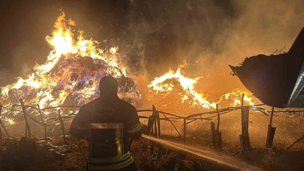 Yangında mahalle muhtarı Aydın Üzer ve kardeşi Ruhsat Üzer’e ait 2 bin 500 balya ot kül olurken yangınla ilgili inceleme başlatıldı.