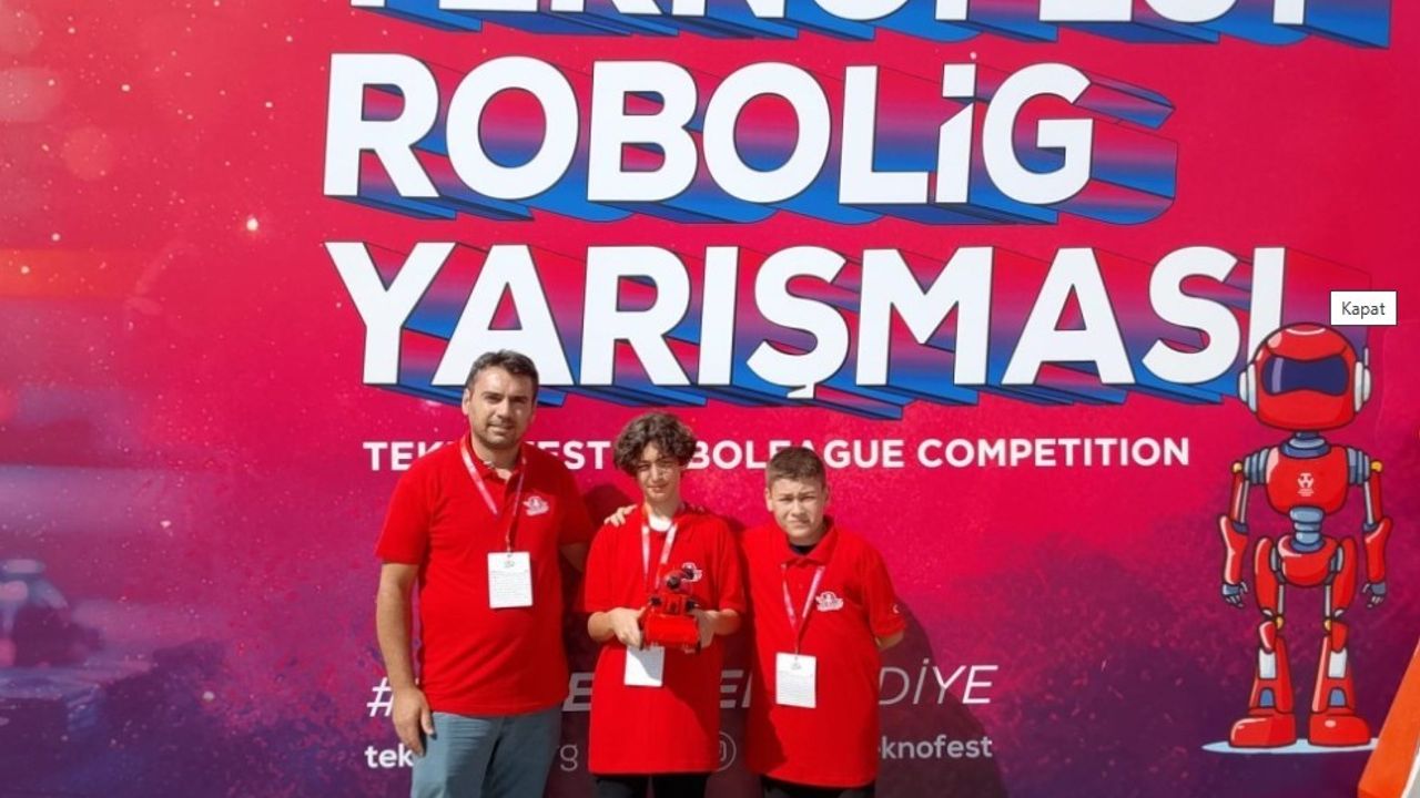 Havacılık, uzay ve teknoloji festivali TEKNOFEST, İstanbul Atatürk Havalimanı’nda gerçekleştirildi. Milyonlarca teknoloji tutkununu ağırlayan festivale Eskişehir’den Ata Ortaokulu Pro_je7 Takımı da katılım sağladı. TEKNOFEST 2025 Robolig Yarışması Ortaokul Kategorisi’nde yarışan takım, ’En Özgün Robot’ ödülünün sahibi oldu. İl Milli Eğitim Müdürlüğü tarafından öğrencilerin başarısıyla ilgili yapılan açıklamada, "Bu gurur verici başarıda emeği geçen danışman öğretmenimizi ve öğrencilerimizi yürekten kutluyor, başarılarının devamını diliyoruz" ifadeleri yer aldı.