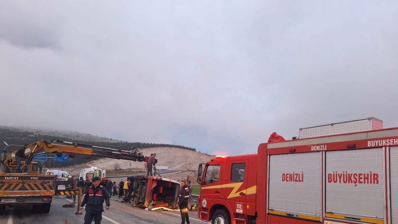 Denizli’nin Tavas ilçesinde tekstil işçilerini taşıyan minibüs, kontrolden çıkması sonucu refüjü aşarak karşı şeritteki seyir halinde olan otomobil ile çarpıştı. Çarpışma sonucu minibüs devrilirken, 1’i ağır 13 kişi yaralandı.