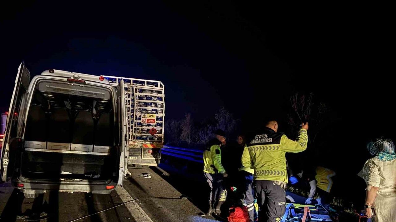 TEM Otoyolu’nun Bolu geçişinde yolcu minibüsüyle tüp yüklü kamyonun çarpışması sonucu meydana gelen kazada 16 kişi yaralandı.
