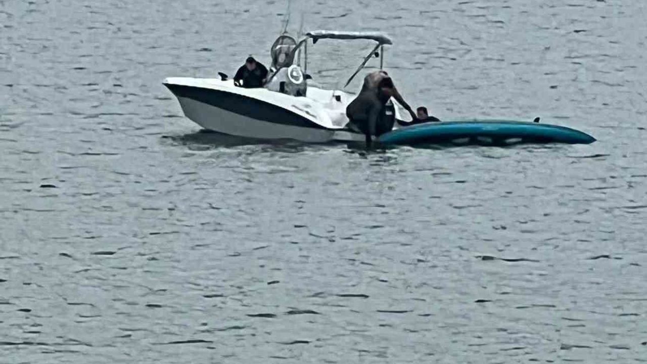 Arnavutköy Terkos Gölü’nde balık tutmak için kanoyla açılan 3 kişi, kanonun devrilmesiyle suya düştü. Yaklaşık 1 saat kurtarılmayı bekleyen şahıslar başka bir tekne tarafından kurtarıldı.