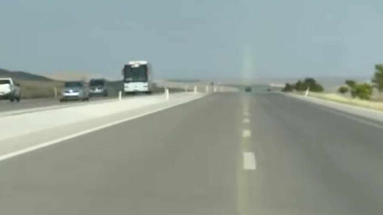 Olay, Aksaray-Konya kara yolu Aksaray istikametine yaşandı. Edinilen bilgiye göre, Konya’dan Aksaray istikametine seyreden 42 FIZ 44 plakalı kamyonet, bir süre ters şeritten seyretti. Yine Aksaray yönüne kendi şeridinden seyreden sürücü ve yanındaki arkadaşı gördükleri manzara karşısında şaşkınlığını gizleyemedi. Aracın hızını tespit etmek için gaza basan sürücü yaklaşık 120 kilometre hızla araca yaklaşabilirken, o anları araçtaki yolcu kayda aldı. Trafik güvenliğini tehlikeye atarak seyreden araç, karşısından gelen araç ve otobüsü görmesine rağmen hızla devam ederken, bir süre sonra gözden kayboldu.