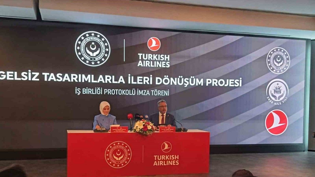 Türk Hava Yolları ile Aile ve Sosyal Hizmetler Bakanlığı, "Engelsiz Tasarımlarla İleri Dönüşüm Projesi"ne imza attı. Projeyle kullanım ömrü tamamlanmış uçak içi ürünler, Bakanlığa bağlı merkezlerde özel gereksinimli bireylerin elinde yeniden hayat bulacak.