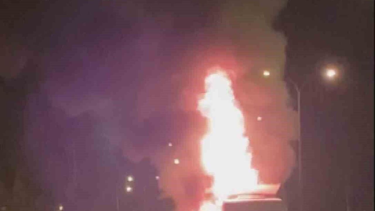Hatay’ın Hassa ilçesinde seyir halindeki tır alev alev yandı, o anlar cep telefonuyla görüntülendi.