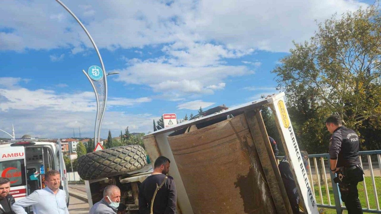Kocaeli’nin Derince ilçesinde seyir halindeki tırın üzerinden yola devrilen asfalt silindirinin içindeki kişi yaralandı.