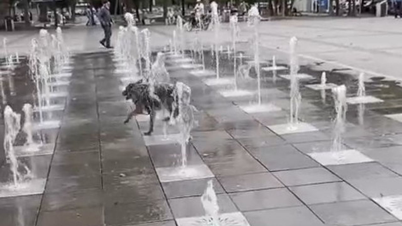 Tokat’ın Erbaa ilçesinde, sıcak havadan bunalan bir sokak köpeğinin süs fıskiyesinde serinleme anları renkli görüntülere sahne oldu. O anlar, çevredeki vatandaşlar tarafından cep telefonu kamerasıyla kaydedildi.