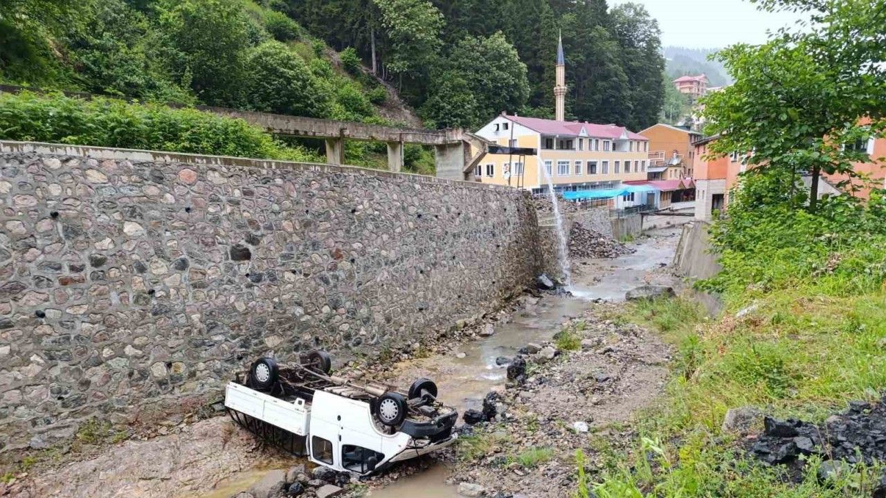 Trabzon’da kamyonetin dereye uçtuğu kazada 2 kişi yaralandı.