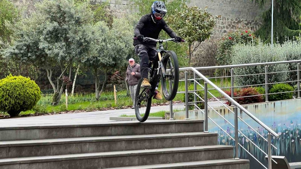 Trabzonlu genç yetenek Samet Demirbaş, kendi tasarladığı bisikletiyle dik merdivenlerden inişleriyle dikkat çekiyor. Dik merdivenlerden atlayarak adrenalin dolu gösteriler yapan Demirbaş, kısa sürede binlerce takipçiye ulaştı.