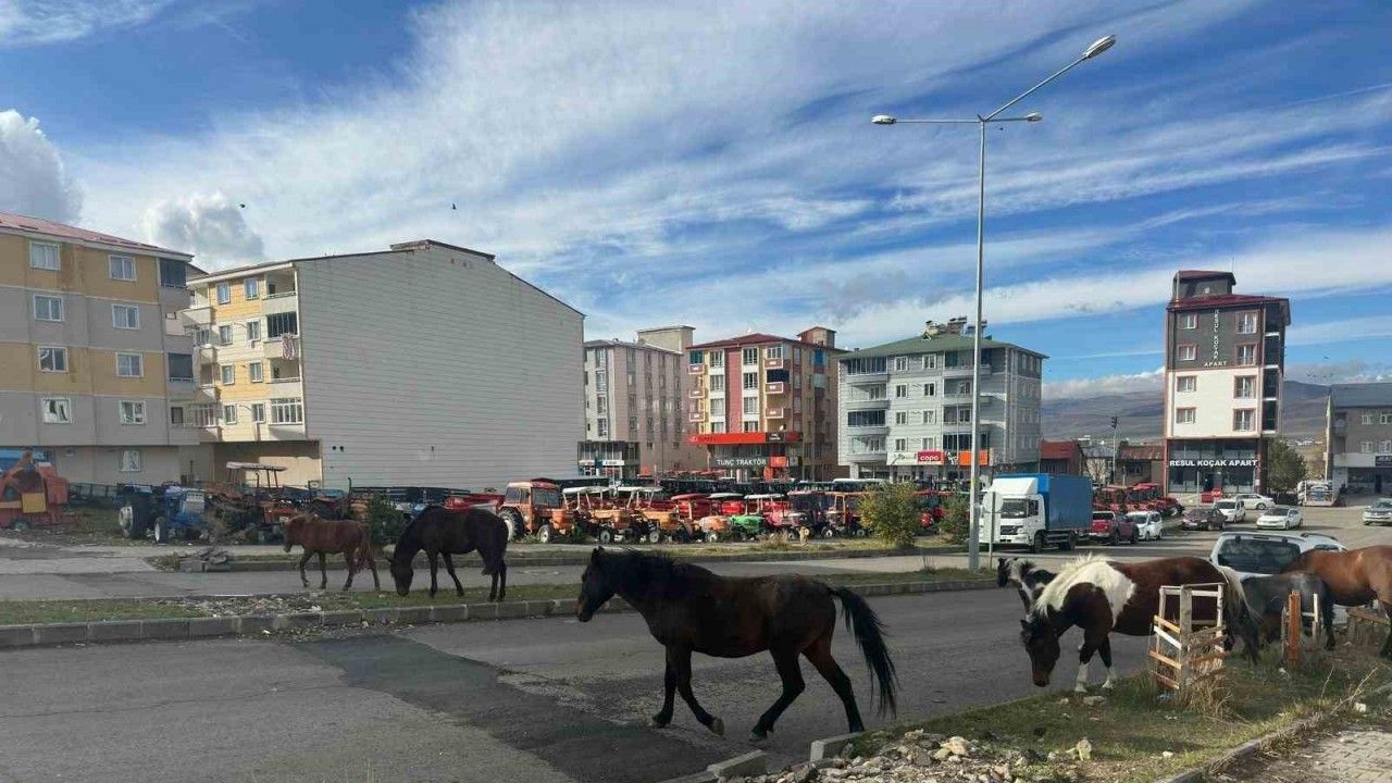 Ardahan’da başıboş atlar, cadde ve sokaklarda tehlike saçmaya devam ediyor.