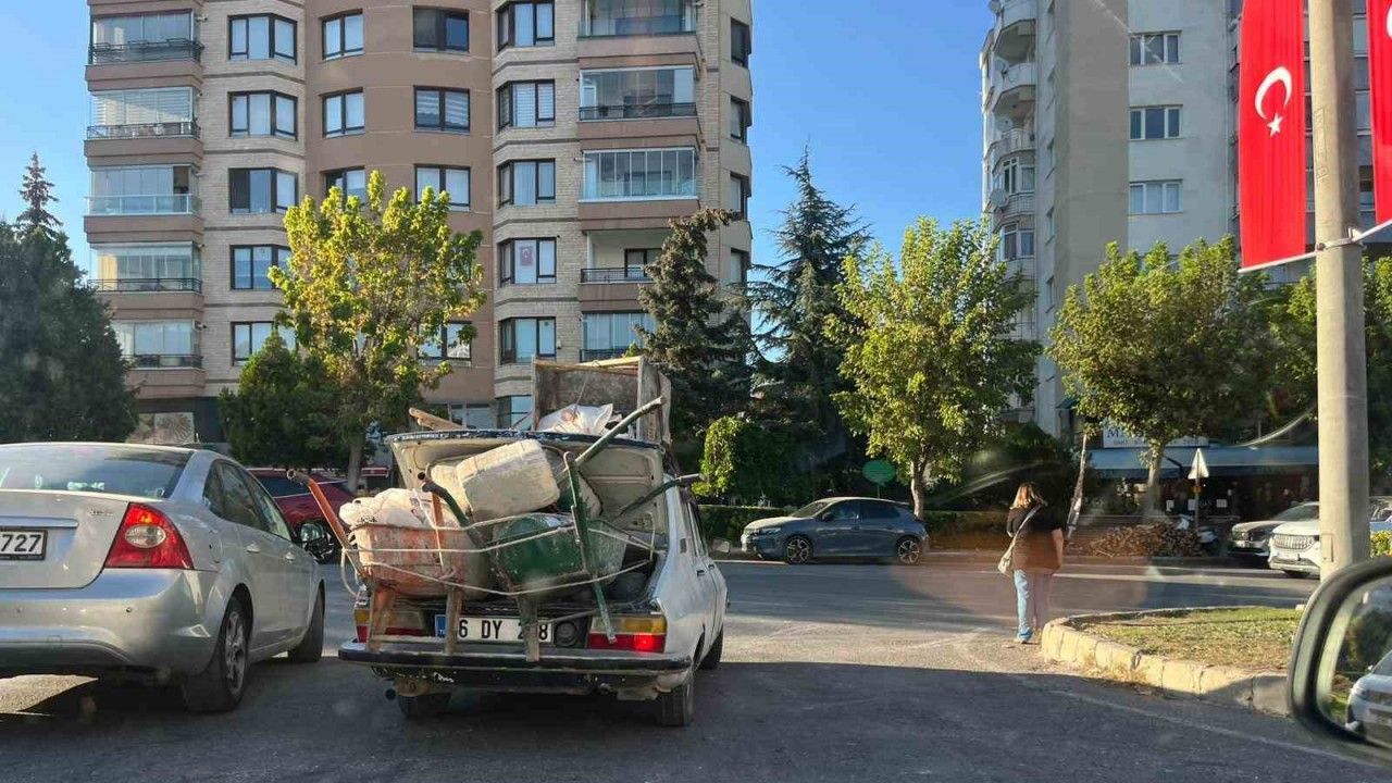 Vişnelik Mahallesi Atatürk Bulvarı’nda seyir halinde bulunan bir otomobil dikkat çekti. Sürücü, aracın bagaj kapısını kapatmayarak içerisine, dışarı taşacak şekilde el arabaları gibi birçok inşaat malzemesi koyup tavanına ise demir bir malzeme yerleştirdi. Bunları iple bağlayıp bu şekilde trafiğe çıkan sürücü, hem kendini, hem de diğer araçları ve sürücüleri riske attı. Ortaya çıkan bu görüntü ’pes’ dedirtirken, muhtemel bir faciaya ise kapı araladı.