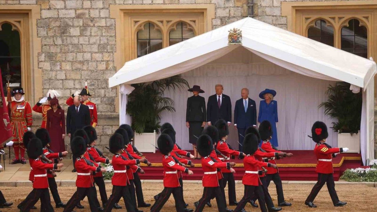ABD Başkanı Donald Trump, göreve geldikten sonra gerçekleştirdiği 2. İngiltere temaslarına başladı. Trump, İngiltere Kralı 3. Charles ile görüşeceği Windsor Kalesi’ne helikopter ile geldi. First Lady Melania Trump ile birlikte Marine One helikopterinden inen Trump’ı, Galler Prensi William ve eşi Galler Prensesi Kate Middleton karşıladı. Prens ve prensesle ayaküstü sohbet eden ABD Başkanı Trump ve Firs Lady kısa bir yürüyüşün ardından İngiltere Kralı 3. Charles ve Kraliçe Camilla ile selamlaştı. Karşılama töreninin ardından Kraliyet üyeleri ve Trump çifti fayton konvoyuyla Windsor Kalesi’nin avlusuna geçti. Burada düzenlenen görkemli resmi törende Grenadier Muhafızları, Coldstream Muhafızları ve İskoç Muhafızları toplu bandosu tarafından ABD ve İngiliz milli marşları çalındı. İngiltere Kralı 3. Charles, Kraliçe Camilla, Galler Prensi William, Galler Prensesi Kate Middleton ve Trump çifti avludaki resmi tören tamamlandıktan sonra, öğle yemeğine geçti.