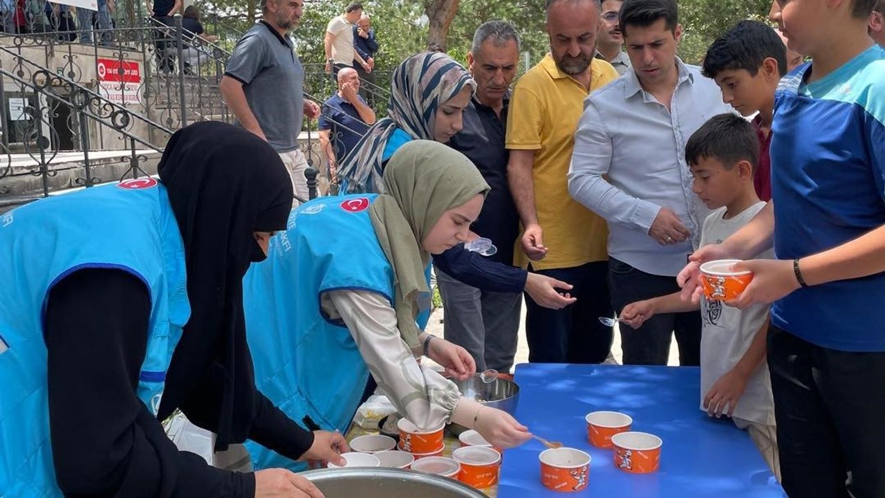 Namaz sonrası cami cemaatine ve Yaz Kur’an Kursu öğrencilerine yönelik düzenlenen programda, TDV’nin ikram aracıyla aşure ikramı yapıldı.