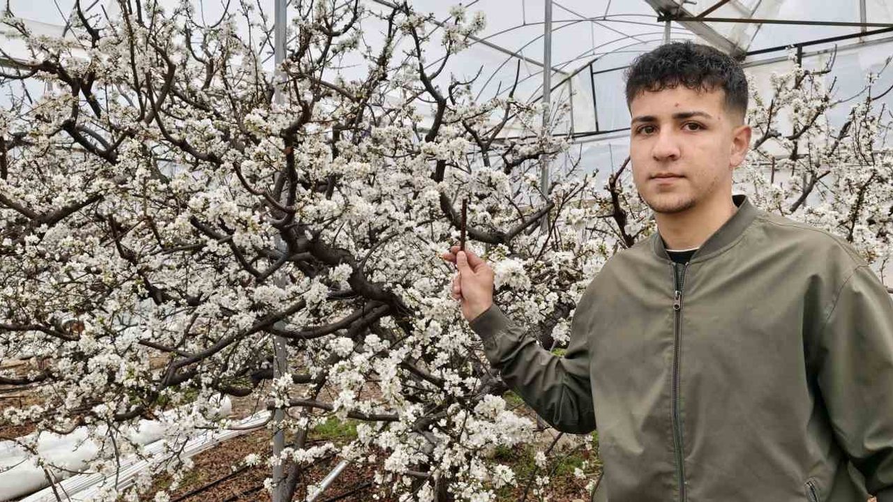 Çiçek açan örtü altı erik bahçesinde incelemelerde bulunan üretici Burak Temur, Türkiye genelinde kar yağışıyla her yer beyaza bürünürken Silifke'de bahar havasının yaşandığını söyledi. 3 dönümlük erik bahçesini sezon öncesinde örtü altına aldığını belirten Temur, ağaçların çiçek açtığını ifade ederek, 'Bahçemizi ocak ayının başında hazırladık. Bambus ve bal arılarıyla tozlanmayı sağlıyoruz. Şubat ayının ilk haftasında çiçek açan bahçemizde mart ayında hasat yapmayı hedefliyoruz. Yaklaşık 6 ton ürün bekliyoruz. Türkiye'nin her yeri kar kış içindeyken bahçemizdeki ağaçlar beyaza büründü' dedi.