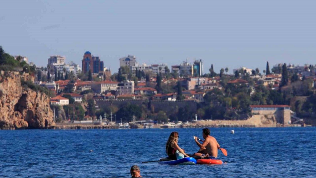 Kasım ayının ortalarında Türkiye’nin birçok noktasında karla mücadele edilirken, turizmin başkenti Antalya’da yazdan kalma günler yaşanmaya devam ediyor. Sıcak havayı fırsat bilen kent sakinleri ve turistler Konyaaltı Sahili’nde denize girmenin keyfini yaşadı.