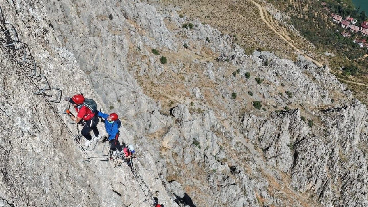 Erzincan’ın Kemaliye ilçesinde sarp kayalıklara yapılan ve 517 demir basamaktan oluşan demir yol (Via Ferrata) parkuru, tırmanış yapmak isteyen yerli ve yabancı adrenalin tutkunlarını ağırlıyor.