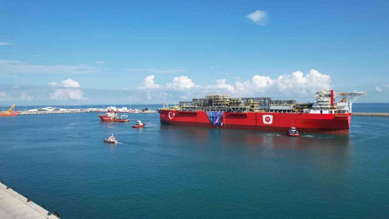 Türkiye’nin ilk yüzer doğal gaz üretim platformu (FPU) Osman Gazi, Filyos Liman’ına girişi ile havadan görüntülendi.