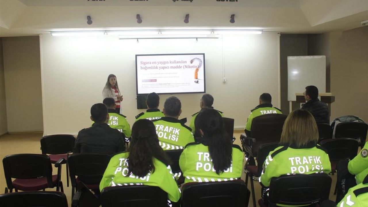 2024-2028 Tütün Kontrolü Strateji Belgesi ve Eylem Planı kapsamında, ’A2. Sigarayı Bırakma’ başlığı altında yer alan ’3.4. Kamu kurumlarında sigara bırakma kampanyasının düzenlenmesi’ faaliyeti çerçevesinde önemli bir adım atıldı. Toplumda tütün kullanımını azaltmak ve bireylerin sigarayı bırakma süreçlerini desteklemek amacıyla Eskişehir Trafik Polis Eğitim Merkezi Müdürlüğü’nde Dr. Pakize Gizem Topçu tarafından ’Tütün ve Tütün Ürünlerinin Zararları’ konusunda bilgilendirme eğitimi gerçekleştirildi. Eğitimin ardından katılımcılara Yerinde Sigara Bırakma Danışmanlığı Hizmeti kapsamında poliklinik hizmeti verildi ve bireylerin sigarayı bırakma yolculuğu desteklendi.