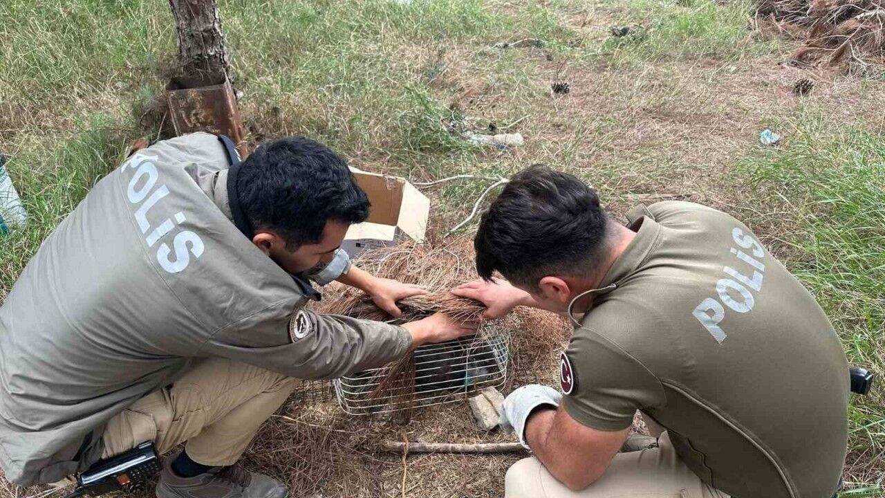 Mersin’de iğne yapraklı çam ağaçları arasında kafesli tuzağa takılan ve ölmek üzere olan nesli tükenme tehlikesi altındaki bayağı çakır kuşunu polis kurtardı.
