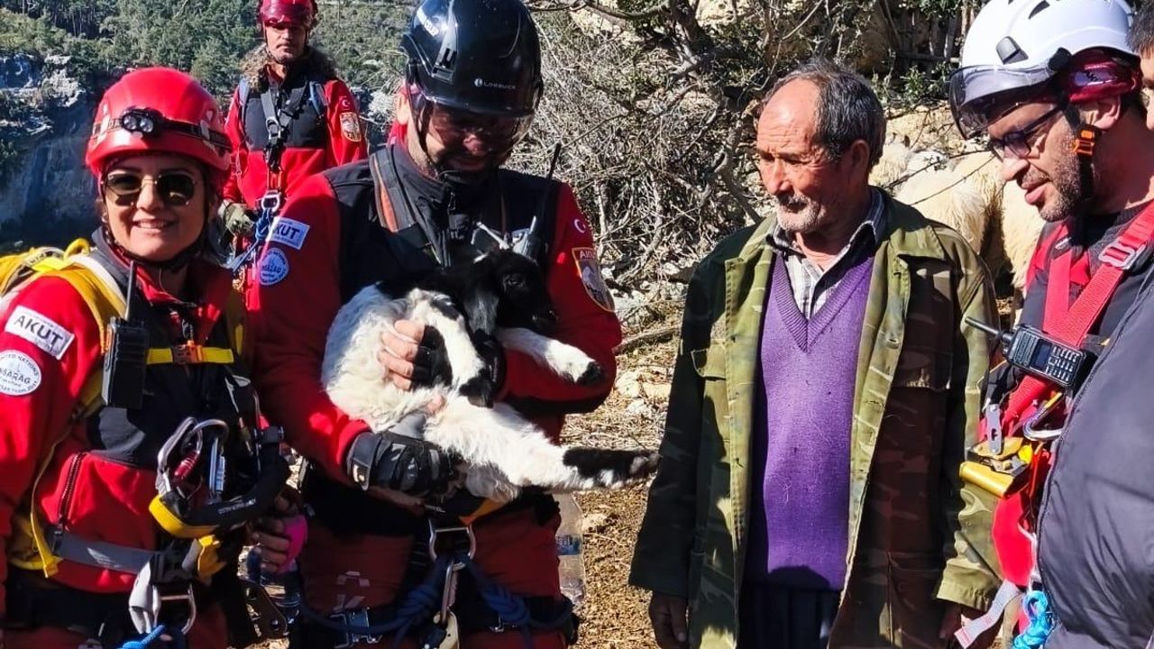 Mersin'in Erdemli ilçesinde uçurumdan düşen kuzu kurtarma ekiplerinin çalışmasıyla bulunduğu yerden alınarak sahibine teslim edildi.