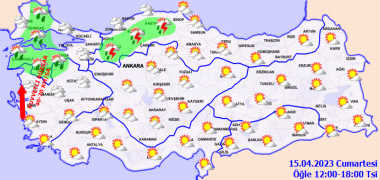 Meteoroloji Genel Müdürlüğü tarafından yapılan son değerlendirmelere göre: Ülkemizin kuzey, iç ve doğu kesimlerinin parçalı ve yer yer çok bulutlu, Marmara'nın batısı, Batı Karadeniz'in iç kesimleri ile Bursa ve Balıkesir çevrelerinin yerel olmak üzere aralıklı sağanak ve gök gürültülü sağanak yağışlı, diğer yerlerin az bulutlu ve açık geçeceği tahmin ediliyor. Bu sabah ve gece saatlerinde doğu kesimlerde yer yer sis ve pus olayı bekleniyor.