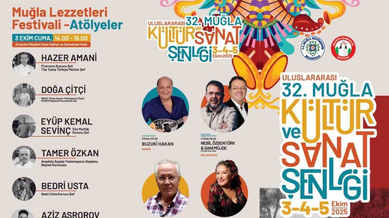 Muğla Büyükşehir Belediyesi ve Menteşe Belediyesi iş birliğinde bu yıl 32’incisi düzenlenecek olan Uluslararası Muğla Kültür ve Sanat Şenliği başlıyor. Şenlik kapsamında Cumhuriyet Gazetesi ödül töreni, Karabağlar Yayla Kavun Yarışması, Muğla Lezzetleri coğrafi ürünlerin tanıtımı, sergiler, konserler, söyleşi ve kitap imza günleri, çocuk etkinlikleri (sinema ve tiyatro gösterileri), atölye çalışmaları gerçekleştirilecek.