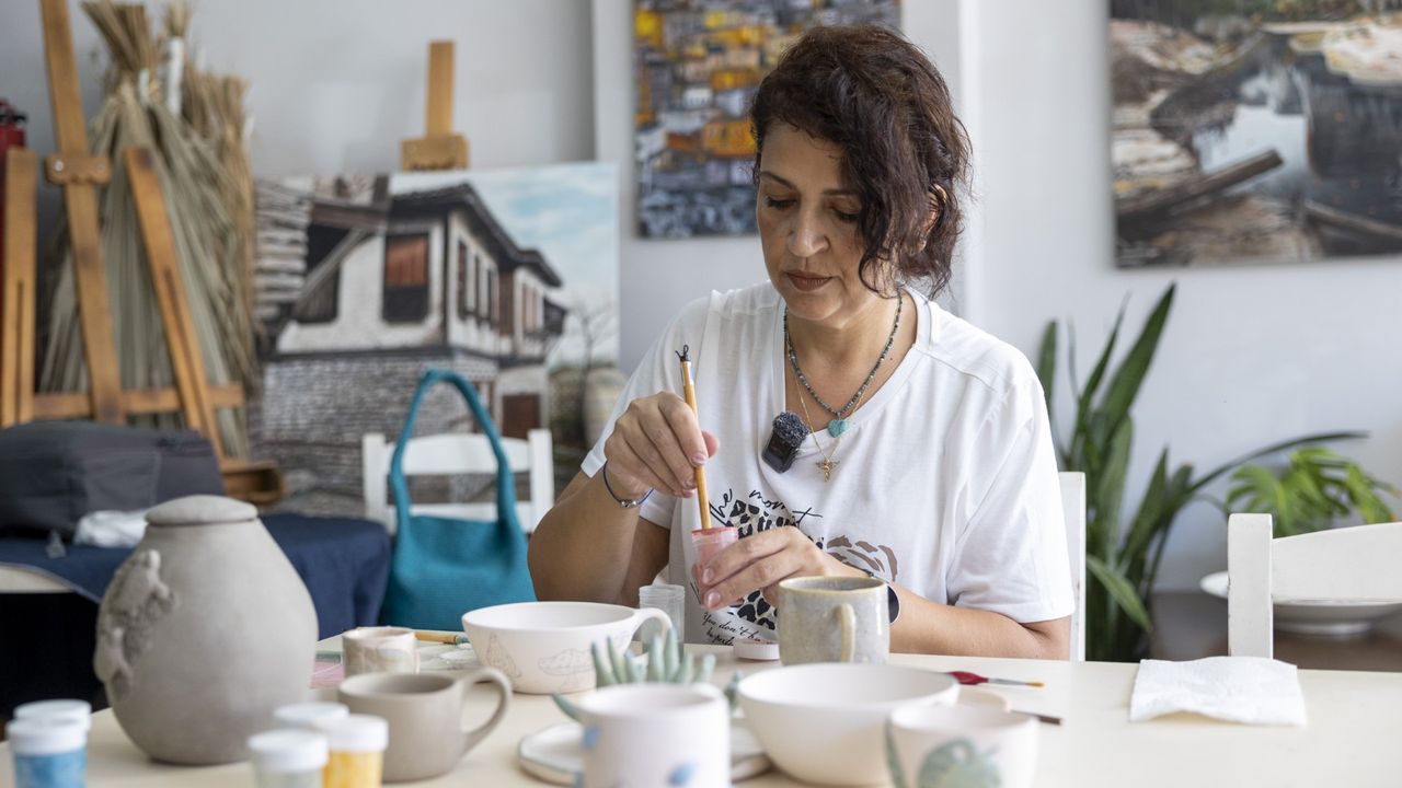 Bu stantlardan faydalanan üreticilerden biri, yaklaşık 15 yıldır sanat yolculuğunda olan Zeycan Yırtıcı. Pandemi döneminde seramik üretimine yönelen Yırtıcı, yağlı boya sevgisini özgün tasarımlarına aktararak tamamen el emeği ile benzersiz seramik ürünleri üretiyor. Sanatçı, hiçbir baskı kullanmadan, kendi çizimleriyle seramiklerine değer katıyor.