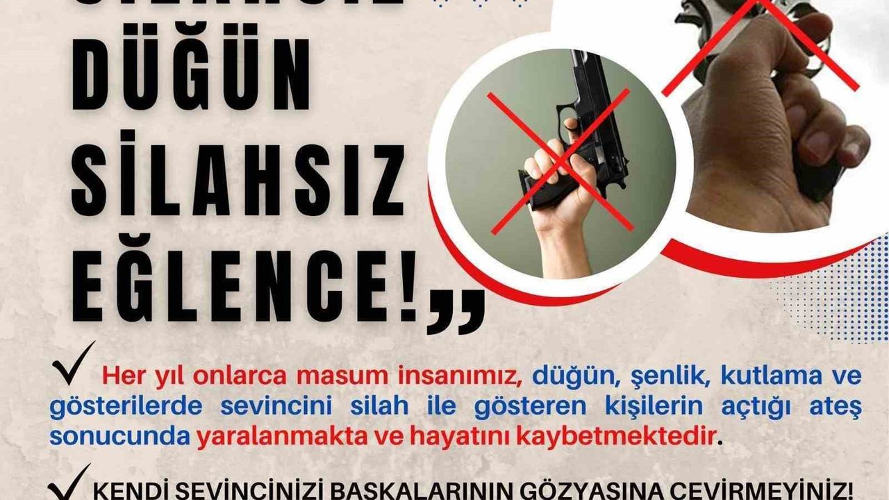 Ayrıca muhtarlıklar, kahvehaneler ve vatandaşların görebileceği alanlara " ‘Silahsız düğün silahsız eğlence’, ‘Kendi sevincinizi başkalarının gözyaşına çevirmeyiniz’, ‘Düğünlerde mutluluğu silahla değil, alkışla paylaşalım’, ‘Silahla ateş ederek bulunduğunuz ortamı şenlendirdiğinizi sanmayın’" yazılı afişler asıldı.
