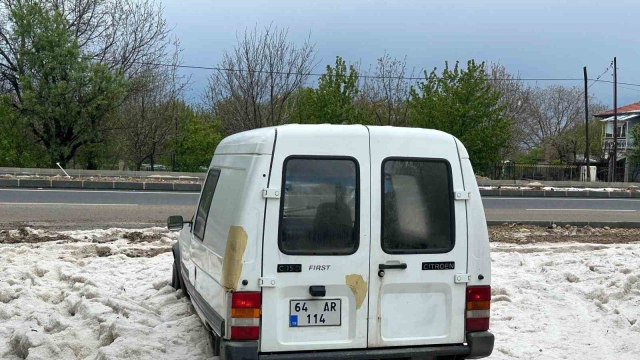 Uşak’ın Sivaslı ilçesinde sağanak yağış ardından yağan dolu yağışı sokakları beyaza bürüdü.
