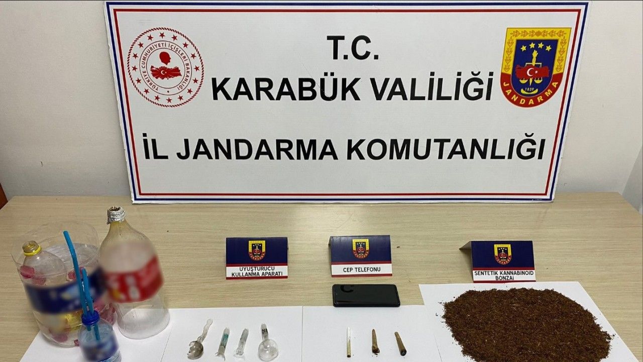 Karabük’te jandarma ekiplerinin düzenlediği uyuşturucu operasyonunda 2 kişi yakalanırken çeşitli miktarlarda sentetik uyuşturucu madde ve kullanım aparatı ele geçirildi.