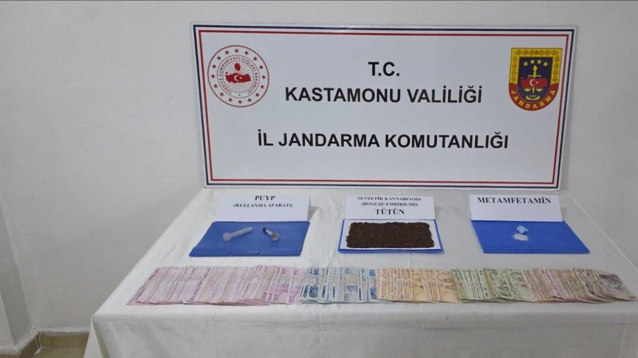 Edinilen bilgiye göre, Kastamonu İl Jandarma Komutanlığı ekiplerince uyuşturucu madde imal ve ticareti yapan şahıslara yönelik yürütülen çalışmalar neticesinde, M.Ü.’nün aracında 4 Nisan tarihinde yapılan aramada bir miktar metamfetamin, kannabinoid ve suçtan elde edildiği değerlendirilen 34 bin TL nakit para ele geçirildi. Jandarma ekiplerince gözaltına alınan M.Ü. tutuklandı.