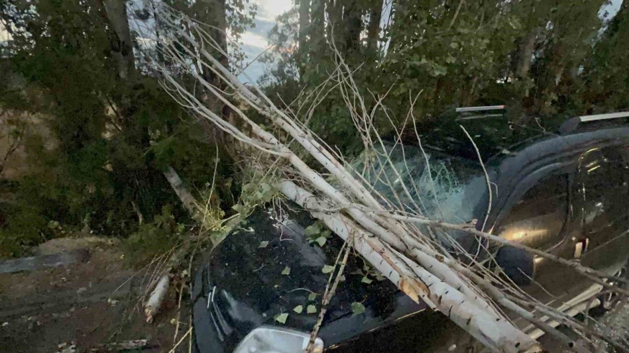 Eskişehir’de rüzgarın etkisiyle kırılan ağaç dalları park halindeki bir aracın üzerine düşerek maddi hasar oluşturdu.