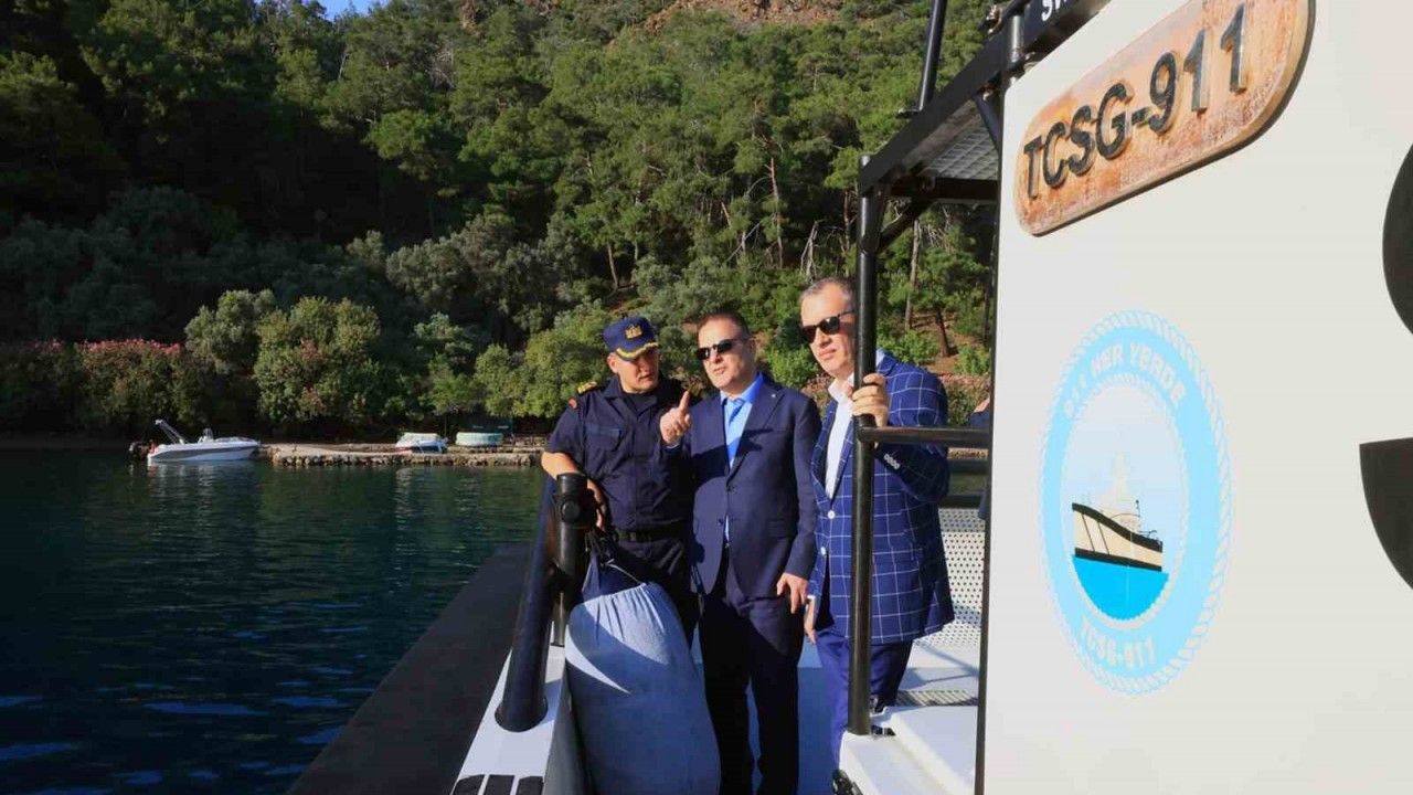 Muğla Valisi Dr. İdris Akbıyık, yat turizmi ile ünlü ve mavi yolculuk tutkunlarının vazgeçilmez rotalarından biri olarak öne çıkan Fethiye ve Göcek Koylarında Sahil Güvenlik botu ile incelemelerde bulundu.