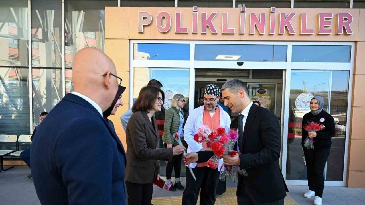 Öte yandan, Vali Aktaş sağlık çalışanlarına karanfil hediye ederken hasta çocuklara ise oyuncak hediye etti.