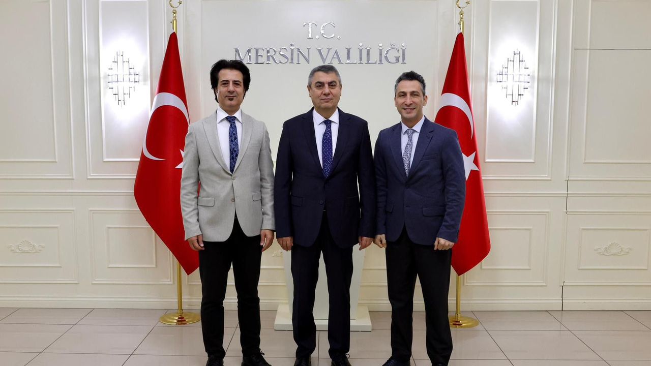 Mersin Valisi Atilla Toros, Mersin Devlet Klasik Türk Müziği Korosu Müdürü Sadık Atabey ve Koro Şefi Kamuran Umuzdaş’ı makamında kabul etti.