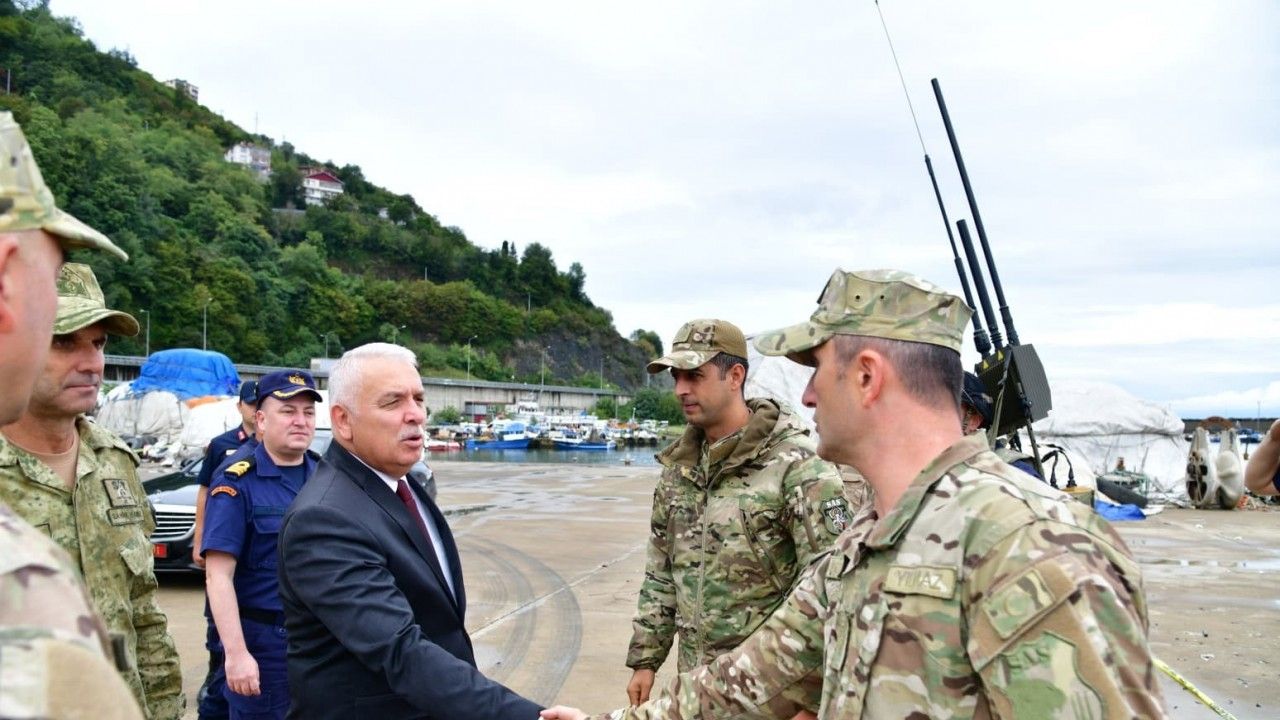 Trabzon’un Çarşıbaşı ilçesi açıklarında avcılık yapan balıkçılar tarafından ele geçirilen ve bu sabah imha edilen insansız deniz aracı ile ilgili Vali Aziz Yıldırım, imha çalışmalarını yürüten güvenlik güçlerini ziyaret ederek Sahil Güvenlik Doğu Karadeniz Grup Komutanı SG Binbaşı Aytaç Bayırlı ve diğer yetkililerden bilgi aldı.
