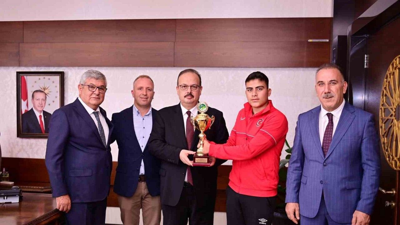 Aydın’ın Karpuzlu ilçesinde yaşayan ve atıcılıktaki yeteneğiyle Türk spor tarihine geçen 16 yaşındaki Muaz Erdem Madran, Çekya’daki Para Trap Dünya Şampiyonası’nda altın madalya kazanırken, Vali Yakup Canbolat dünya şampiyonu Madran’ı makamında ağırladı.
