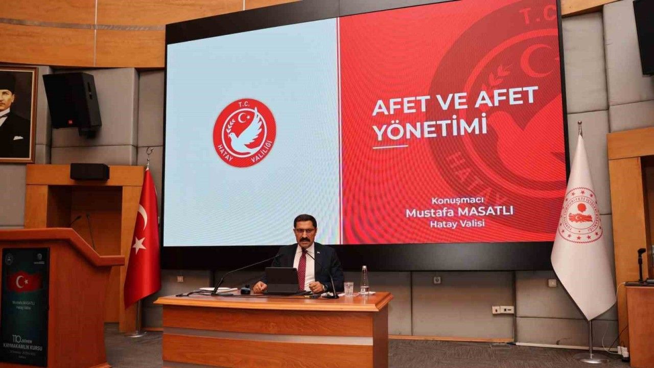 Hatay Valisi Mustafa Masatlı, 110. dönem kaymakam adaylarına eğitimleri kapsamında Afette Hatay Modeli’ni anlattı.