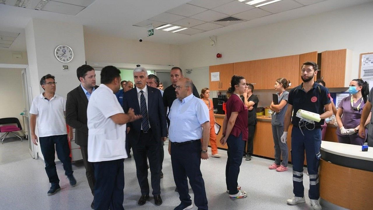 Balıkesir Valisi İsmail Ustaoğlu, yolcu otobüsünün şarampole yuvarlanması sonucu yaralanan vatandaşları hastanede ziyaret etti.