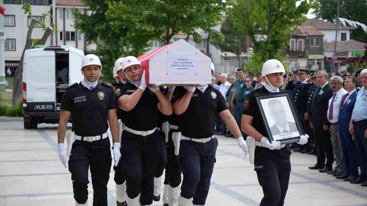 Edirne’de kalp krizi nedeniyle hayatını kaybeden Vali Yardımcısı Erdoğan Beypınar, resmi törenle son yolculuğuna uğurlandı.