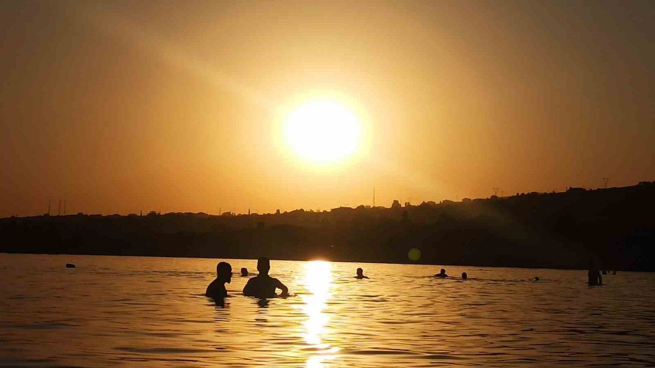 Bitlis’in Ahlat ilçesinde vatandaşlar, gün batımında Van Gölü’nde yüzmenin keyfini çıkarıyor. İlçede özellikle Ahlat Su Sporları Merkezi ile Adilcevaz yolu üzerinde bulunan sahiller, yaz aylarında serinlemek isteyenlerin uğrak noktası oluyor.