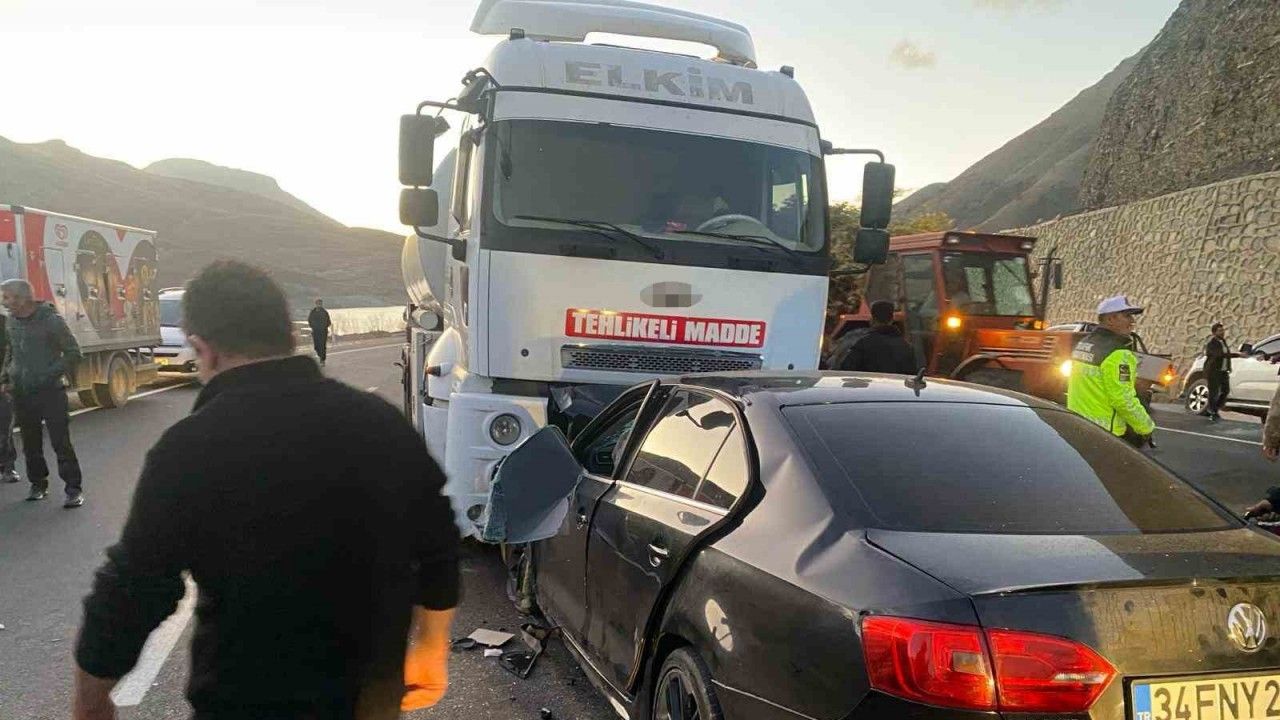 Van-Hakkari karayolunda otomobilin tankerle çarpıştığı kazada 3 kişi hayatını kaybetti, 4 kişi yaralandı.