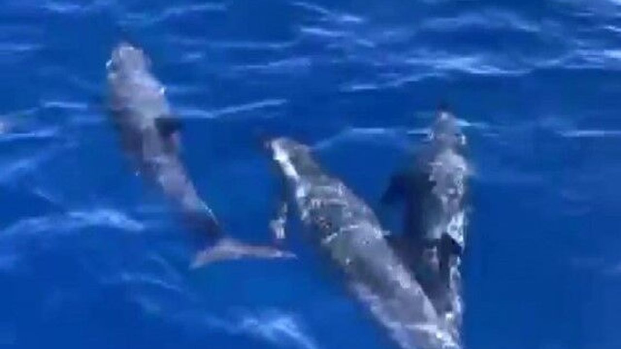 Mersin’de hobi amaçlı balık tutmak için tekneyle denize açılan İsmail Hakkı Kuyanay, kıyıdan yaklaşık 3 mil açıkta adeta gösteri sunan yunusları görüntüledi.