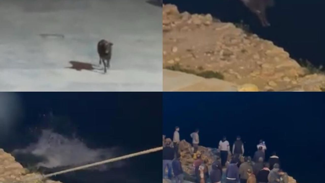 Kaçan angus denize balıklama atladı... O anlar kamerada