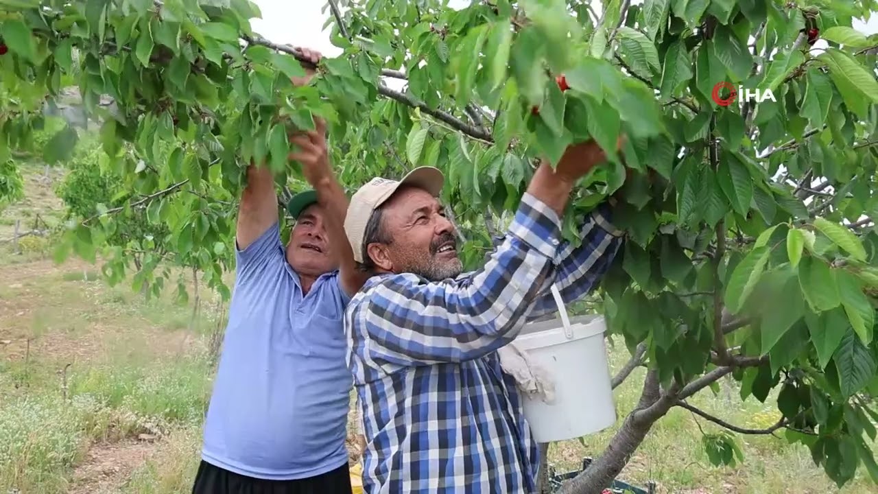 Adana'nın Kozan ilçesinde kiraz hasadı için işçi bulamayınca köylüler kirazı imece usulü hasat etti.