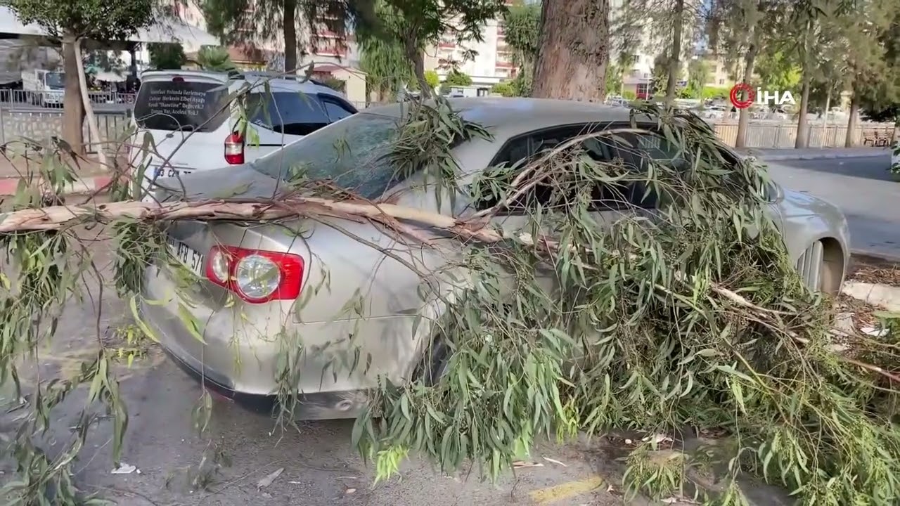 Mersin’in Erdemli ilçesinde kırılan ağaç dalı otomobile zarar verdi.